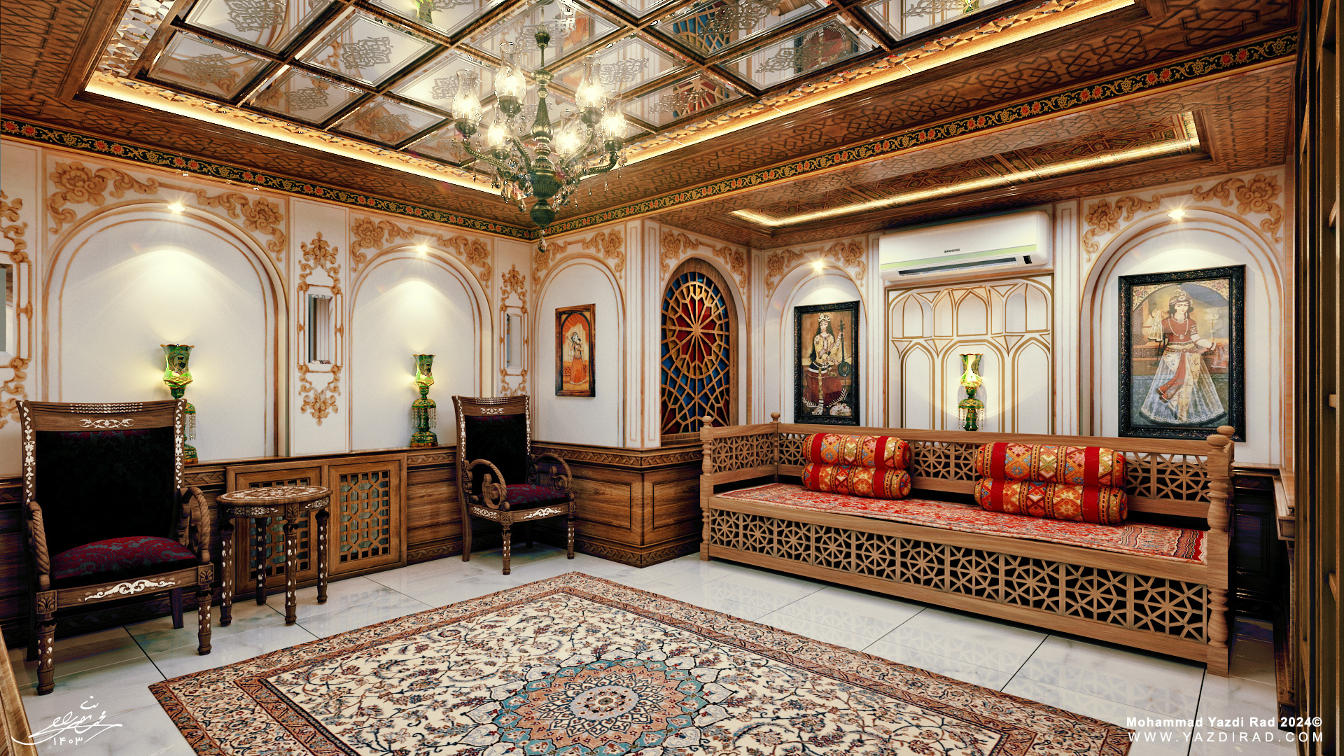 طراحی داخلی فضای نشیمــن با معماری سنتی ایــرانــی