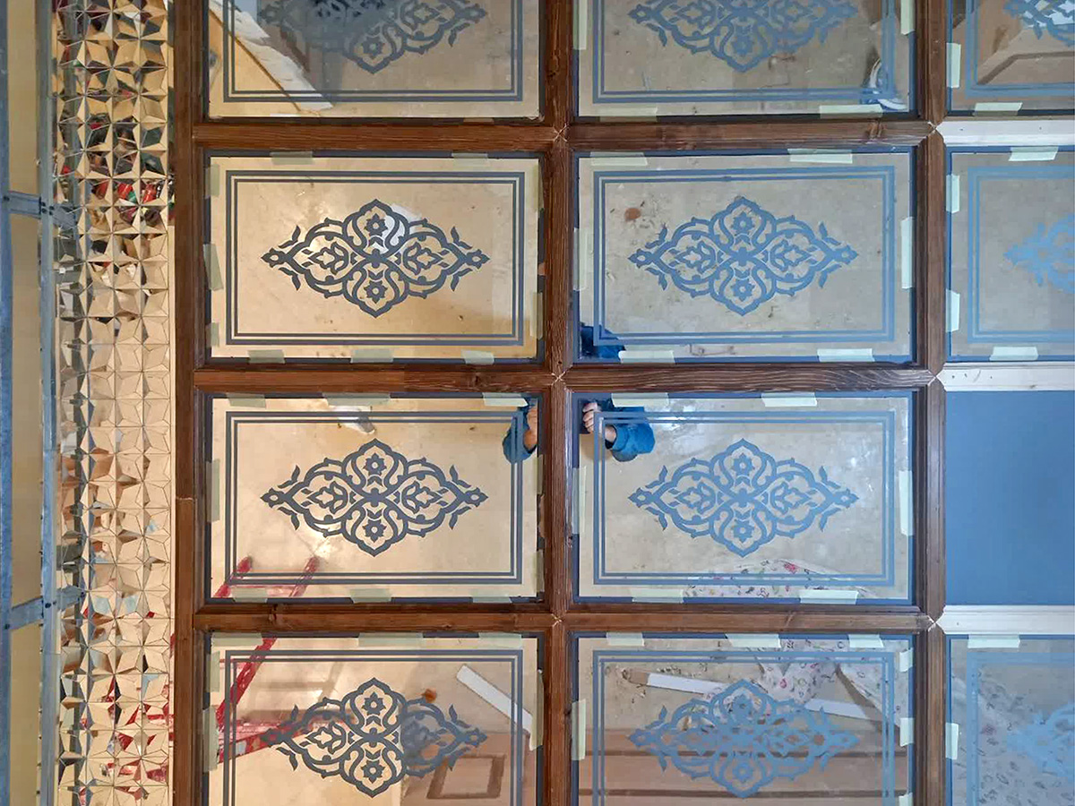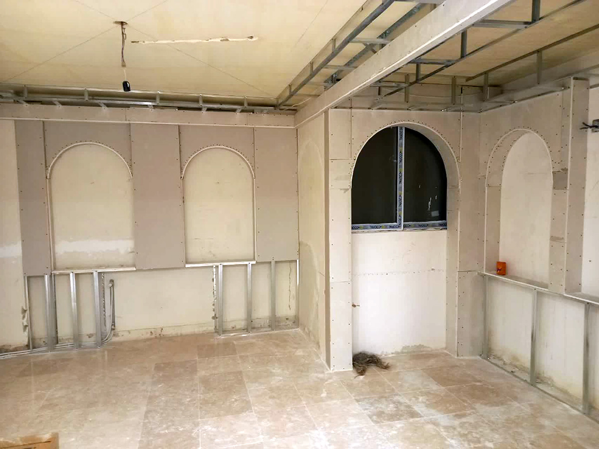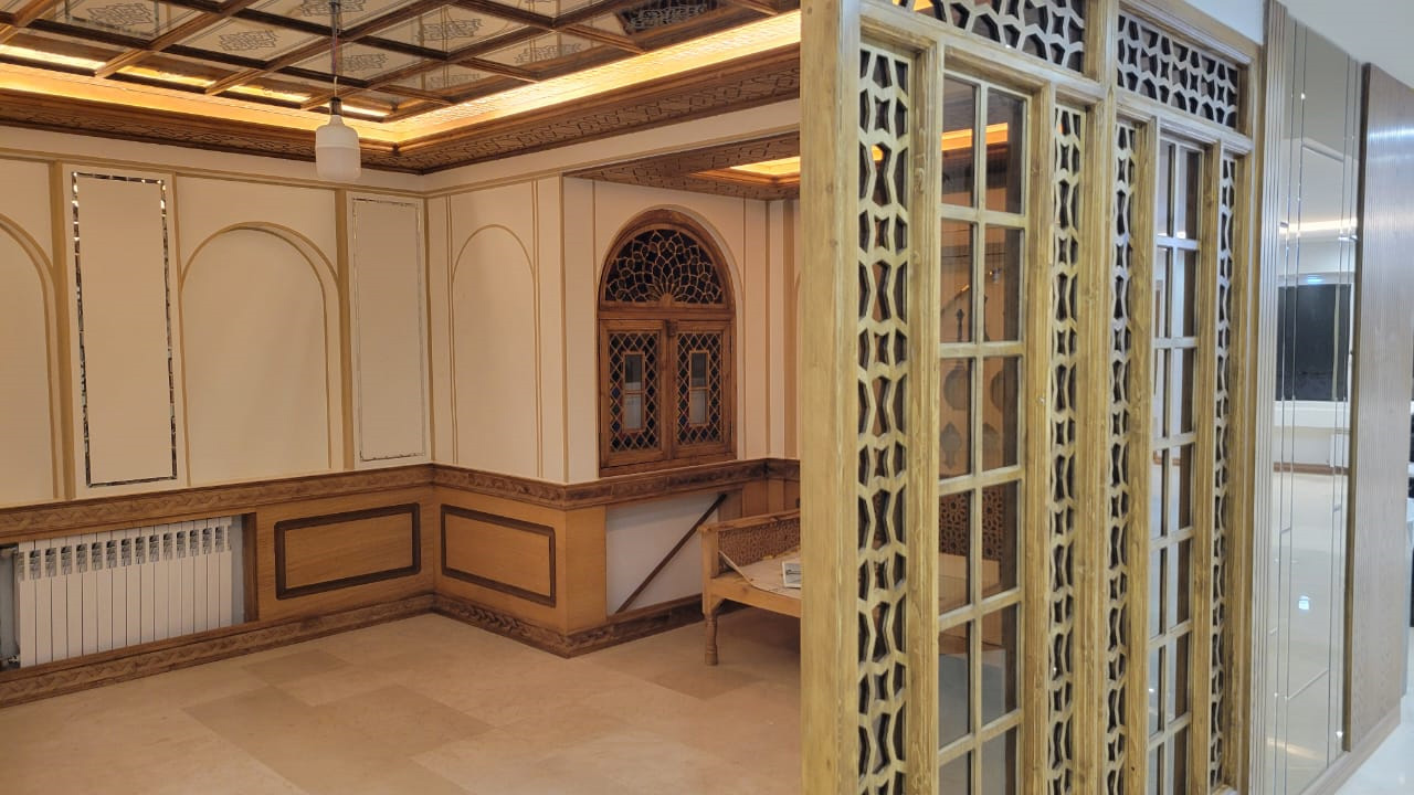 در این پروژه بازسازی منزل، یک فضای اندرونی نشیمن با تزئینات آیینه کاری، گره چینی و ... به سبک معماری ایرانی دوران قاجار طراحی و اجرا گردیده است.
